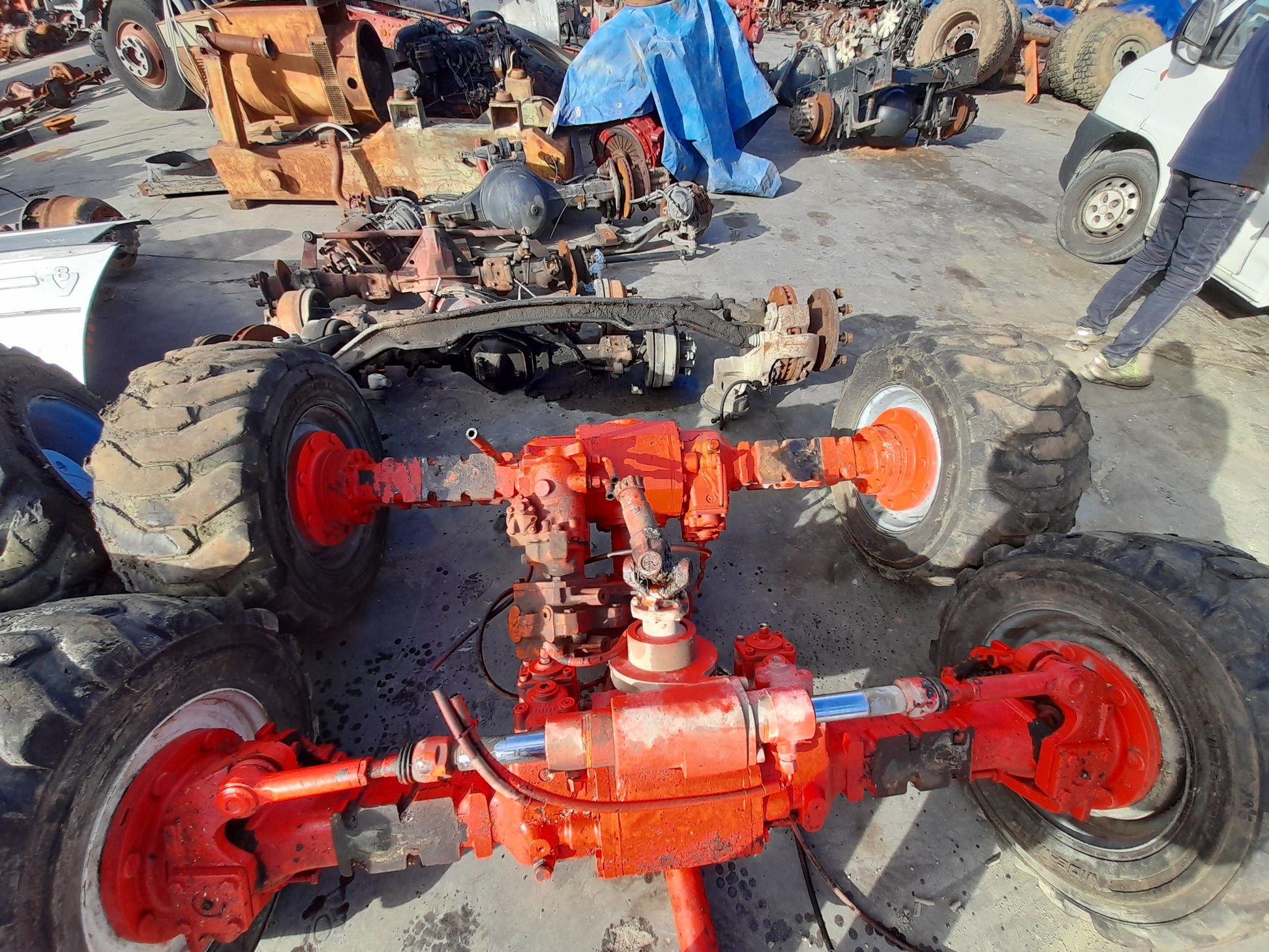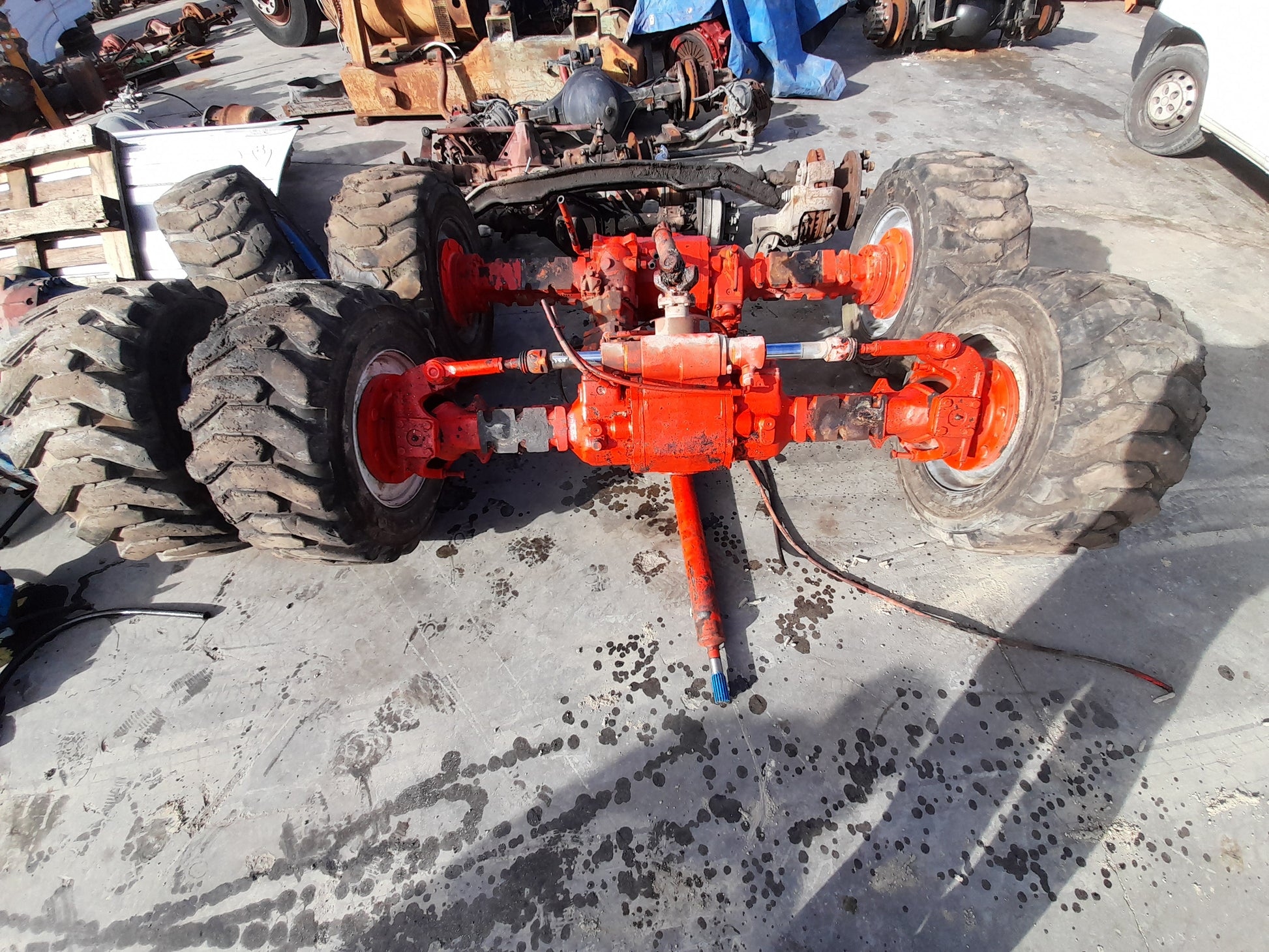 Coppia assali di trazione, anteriore con differenziale, posteriore con differenziale e ripartitore Dana Spicer Clark-Hurt 418R87 in eccellente stato d'uso. S.E.&.O.