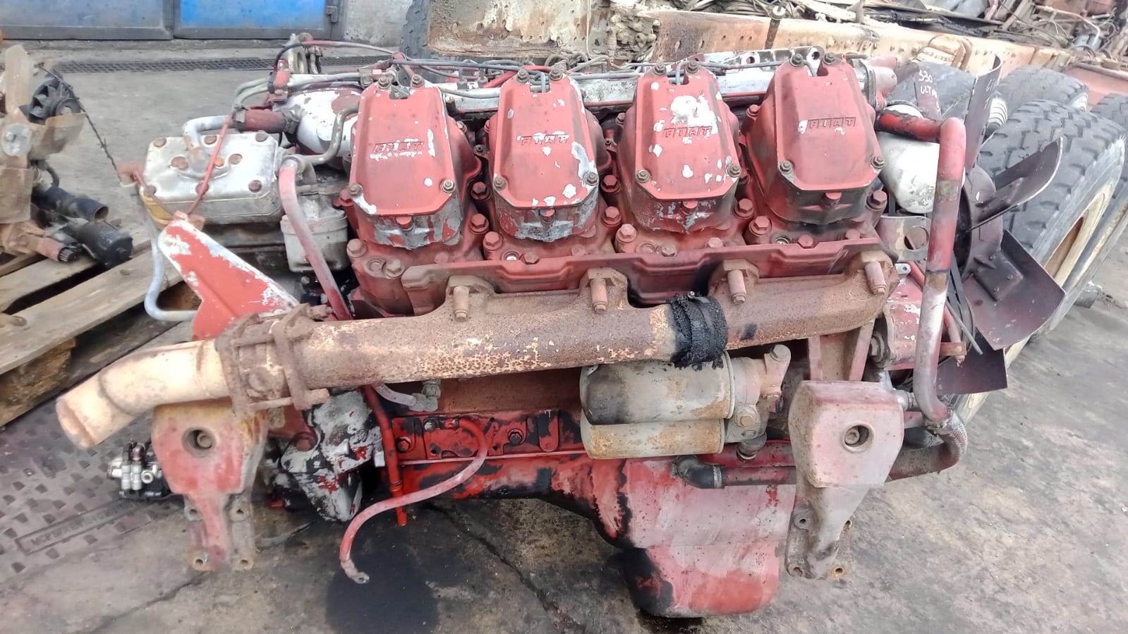 Motore Fiat 8280 8cilindri 17.174 cm³ coppia di 2.050 Nm a soli 1.100 g/min. potenza minima e massima 260 a 310 kW (352 - 420 HP), usato, controllato perfettamente funzionante.