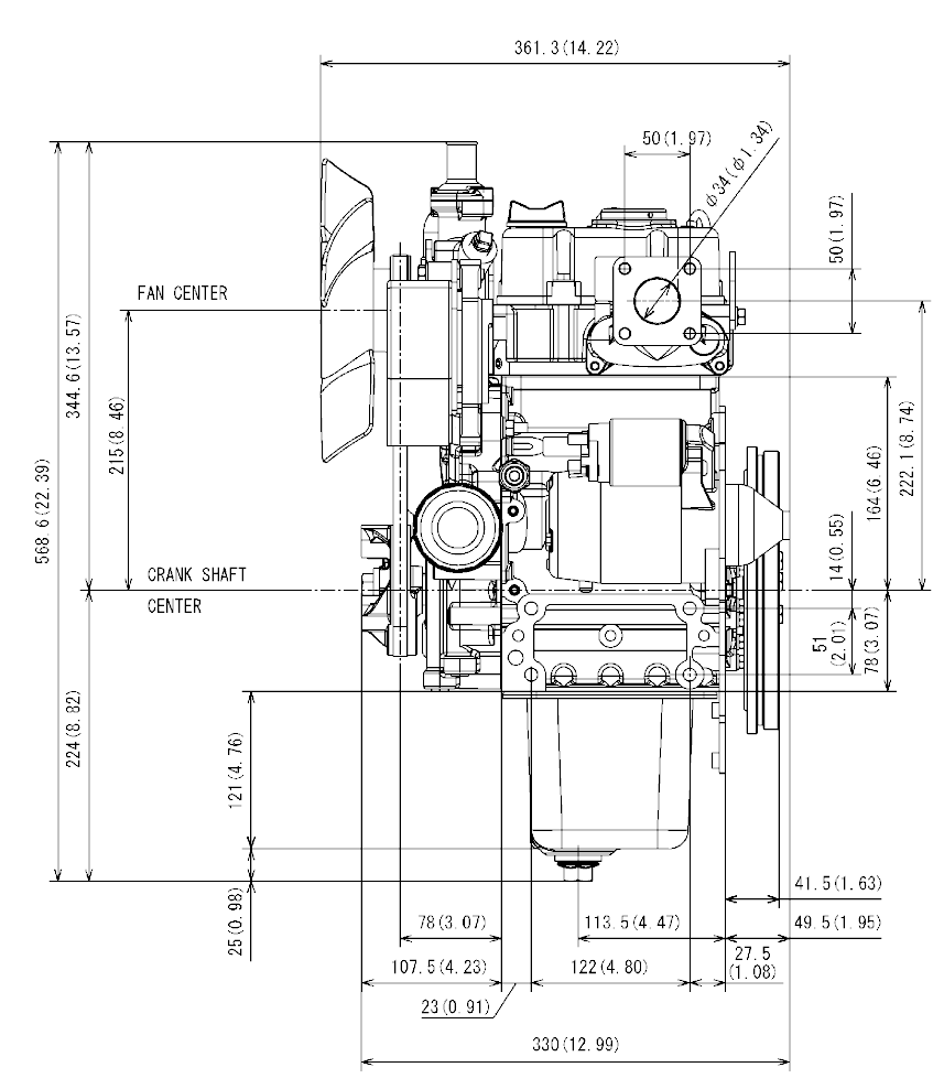Il Kubota Z482 è un motore diesel IDI a 4 cicli verticale, raffreddato ad acqua, a 4 cilindri in linea, con una capacità di 10,8 CV a 3600RPM. S.E.&.O.